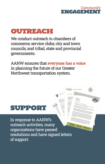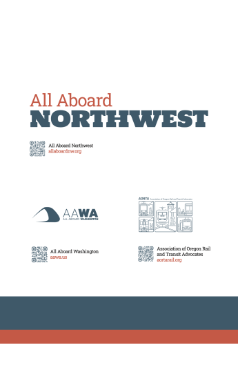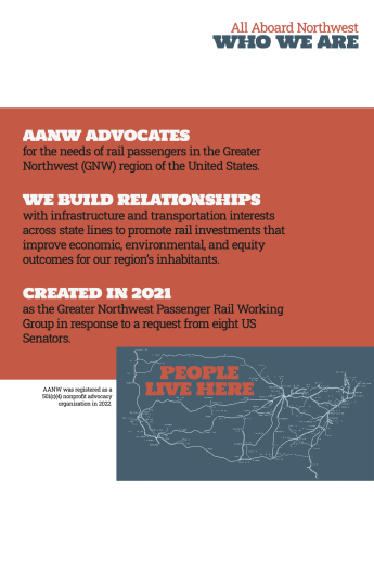 Here's a sneak preview of AANW's display materials that will premiere at the Greater Northwest Passenger Rail Summit in Boise, Ju,y 19-20. They are branded for AAWA, AORTA and AANW. We plan to make 8 boards that will fit on the portable display that Dan McFarling is making available, shown here.